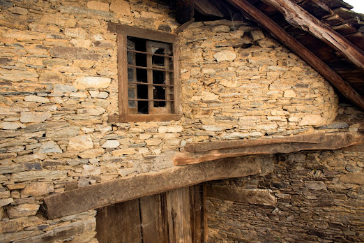 Cruceiro de lajas de pizarra rematando la cumbrera